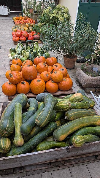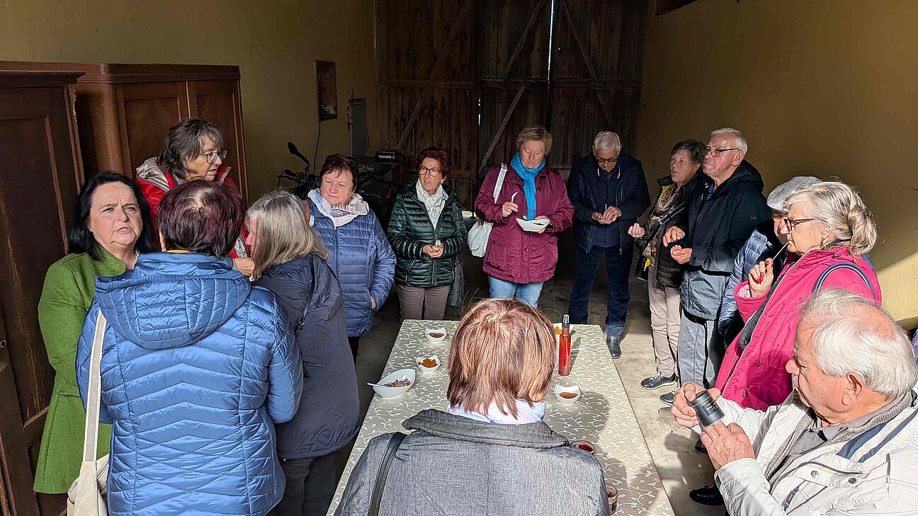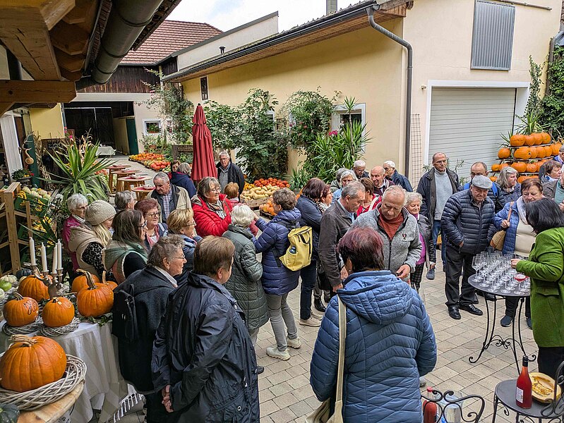 Zu Mittag starteten am Dienstag den 7. Oktober 47 Mitglieder in Richtung Pöchlarn zum Kürbishof Heisler. Die bunte Vielfalt von 150 Sorten an Zier- und Speisekürbissen ließ alle das trübe Herbstwetter schnell vergessen. Es gab Allerlei zu verkosten, vom Erdbeerfrizzante bis Salat, Chutney, Marmelade und Öl vom Kürbis, auch Kürbiskerne in pikant und süß. Nach interessanten Einblicken in den Betrieb und die Landwirtschaft in der Region wurde auch die Einkaufsmöglichkeit eifrig genutzt. Die Rückfahrt über Gresten mit einer Abendjause beim urigen Mostheurigen Klein Eibenberg rundete diesen Halbtagsausflug ab.