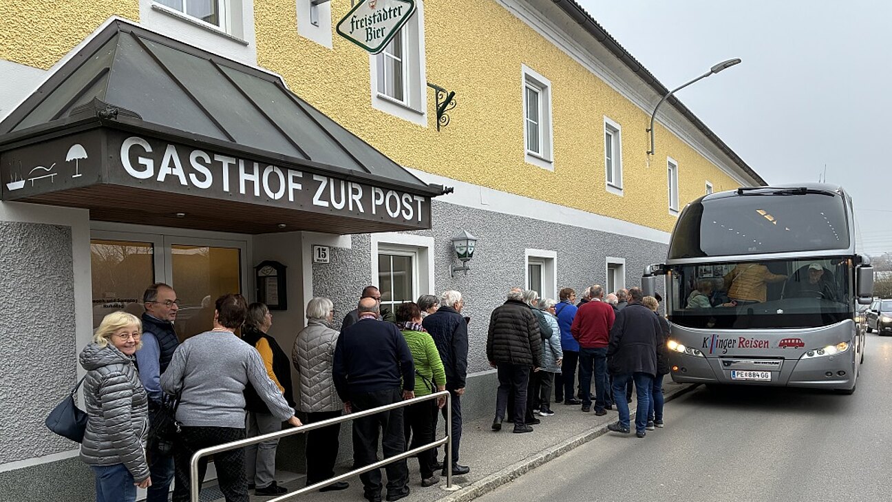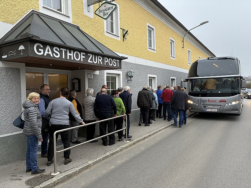 Im Anschluss ging die Fahrt durch das nebelige Mostviertel weiter zum Gasthof Zmug in Aschbach zum Ganslessen. In angenehmer Atmosphäre im gemütlichen Wintergarten genossen alle das üppige Mittagessen und den flotten Service.